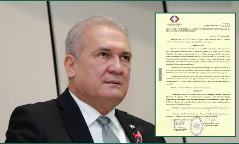 El fiscal general del Estado, Dr. Emiliano Rolón Fernández, dispuso mediante la Resolución n.° 2.793 establecer el ámbito de intervención territorial de la Fiscalía Zonal de Juan Eulogio Estigarribia, ubicada en el Departamento de Caaguazú (Área VI), que ahora también atenderá los hechos punibles ocurridos en los distritos de 3 de Febrero, Tembiaporã, y Mariscal Francisco Solano López.
