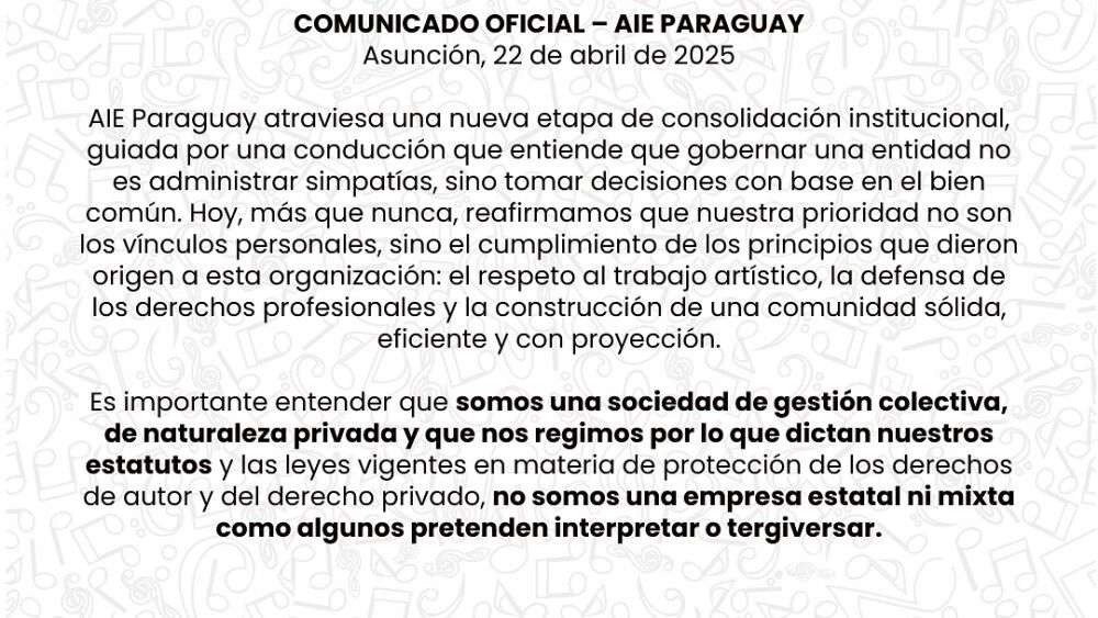Alrededor de unos 200 alumnos quedaron “a la deriva” tras el repentino cierre de la escuela de música de la Entidad de Gestión Colectiva de Derechos de Artistas Intérpretes o Ejecutantes (AIE Paraguay).