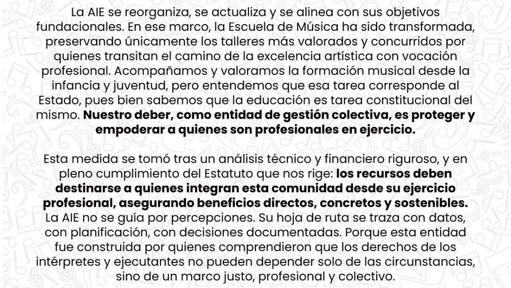 AIE cierra su escuela de música y alumnos tendrán reunión con sus directivos este jueves