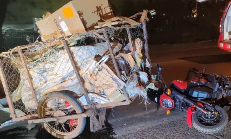 El ahora imputado circulaba en una motocicleta sin chapa ni luces, remolcando un carrito reciclador que transportaba un portón metálico sin reflectores.