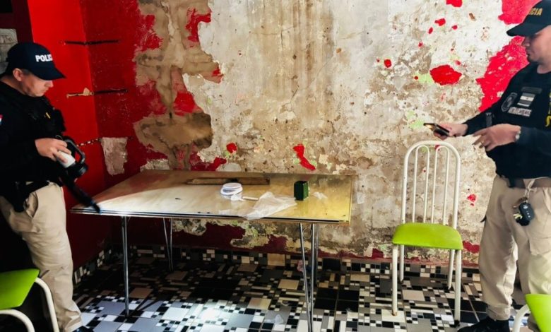 Entre las evidencias encontradas en el lugar, figuran 6,6 gramos de cocaína tipo crac, celular de la marca Redmi, color azul y negro, una escopeta doble caño calibre 12 milímetro, de la marca berta, color negro, sin número de serie.
