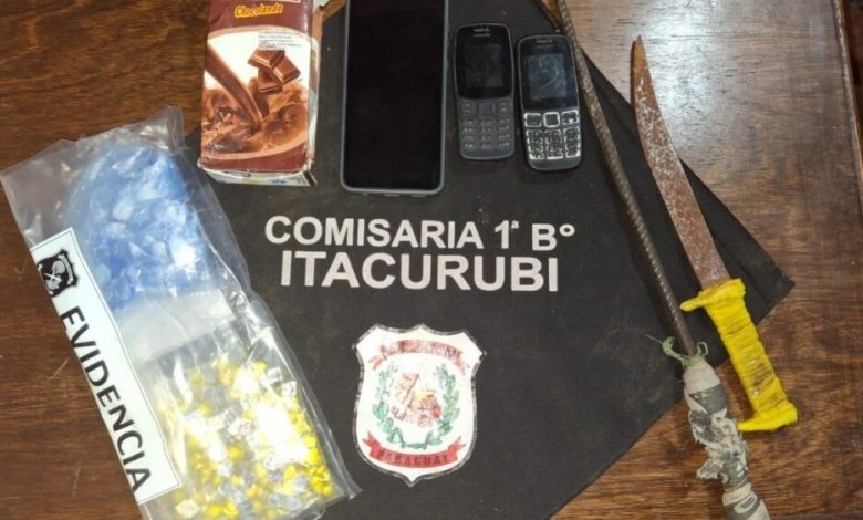 Además, se encontró un envase de chocolatada con 399 pastillas amarillas en blíster, presuntamente del tipo disomnilan, tres celulares y dos armas blancas de fabricación casera. El hallazgo fue comunicado a la Comisaría 1ª del barrio Itacurubí de Concepción.
