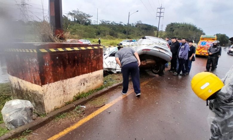 El accidente ocurrió frente a la sede central de la estatal eléctrica en Hernandarias, durante una lluvia, alrededor de las 08:40 de este lunes, en el carril con dirección de Ciudad del Este a Hernandarias, en el Departamento de Alto Paraná.