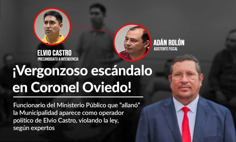 La credibilidad de la justicia paraguaya vuelve a tambalearse, esta vez en Coronel Oviedo, donde un asistente fiscal, Adán Rolón, funcionario activo del Ministerio Público, fue sorprendido participando abiertamente en un mitin político, respaldando al candidato del MICC a la intendencia, Elvio Castro.