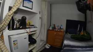 En otra habitación loft, ocupada por un procesado de nacionalidad ucraniana, identificado como Víctor Melnyk, se hallaron un somier, acondicionador de aire y televisor plasma, mientras que en la habitación contigua se encontraron heladera, baño privado y otro televisor plasma.