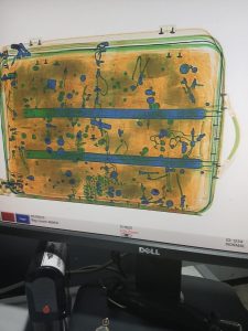 En el control de maletas de pasajeros con rayos x, el operador detectó en las imágenes una sustancia orgánica sospechosa.