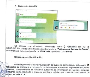 “Tras análisis de la información recabada y considerando que las amenazas y la incitación de cometer hechos punibles constituyen delitos de especial gravedad”, se pudo leer en el informe presentado al Ministerio Público y está incluido en la carpeta fiscal.