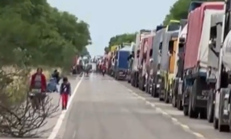 Uno de los choferes, Claudio Capli, relató a Telefuturo que llevan tres días sin poder avanzar y que los camiones estacionados en fila se extienden a lo largo de más de 15 kilómetros de carretera.