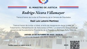 El presidente de la Cámara de Diputados, Raúl Latorre, asistió a la inauguración del nuevo centro asistencial denominado Unidad de Tratamiento y Rehabilitación de Adicciones (UTRA), no así el presidente de la República, Santiago Peña, que figuraba como invitado al acto.