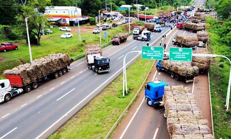 PROTESTAS. El pasado 8 de octubre, los cañicultores levantaron la protesta que mantuvo cerrada la ruta PY02 durante 17 días, en el tramo entre Coronel Oviedo y Caaguazú, específicamente en el cruce Blas Garay. La manifestación, que alcanzó su mayor convocatoria el último día con la participación de aproximadamente 3.000 personas, incluyó la quema de una gran cantidad de neumáticos como medida de presión.