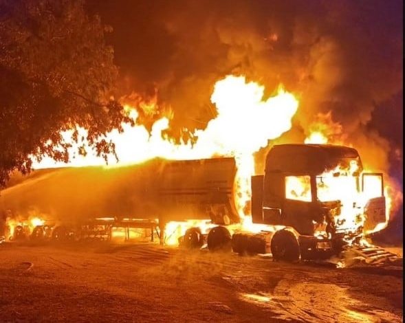 Videos difundidos en redes sociales, muestran el incendio y los restos del camión completamente consumidos por el fuego. Las autoridades investigan el hecho.
