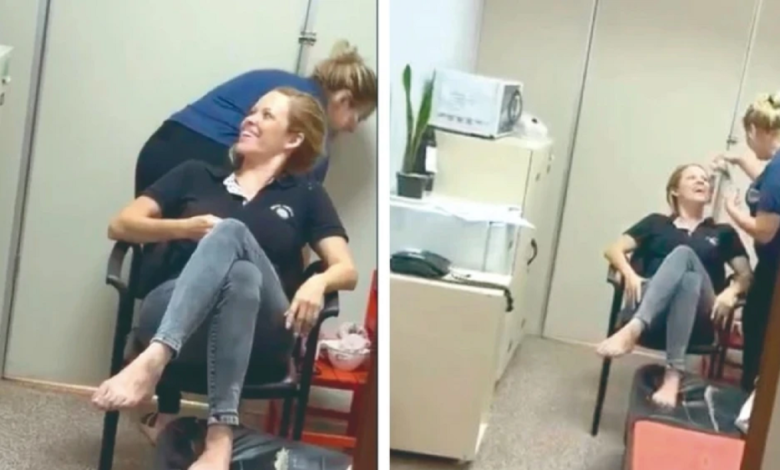 En un video difundido en las redes sociales se ve a la actuaria judicial descalza, con los pies en un banquito, mientras su compañera parece aplicarle un producto en el rostro, lo cual despertó la indignación ciudadana.