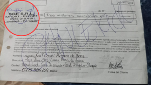 En esta demanda, pese a solo cobrar G. 500.000, logró llegar desde General Delgado (Itapúa) hasta el Juzgado de Paz de Villa Elisa, donde se encuentra con que la demandante es Vanessa Araceli Chaparro Ávalos, de la empresa SGE SRL. Le embargó por G. 7.048.000.
