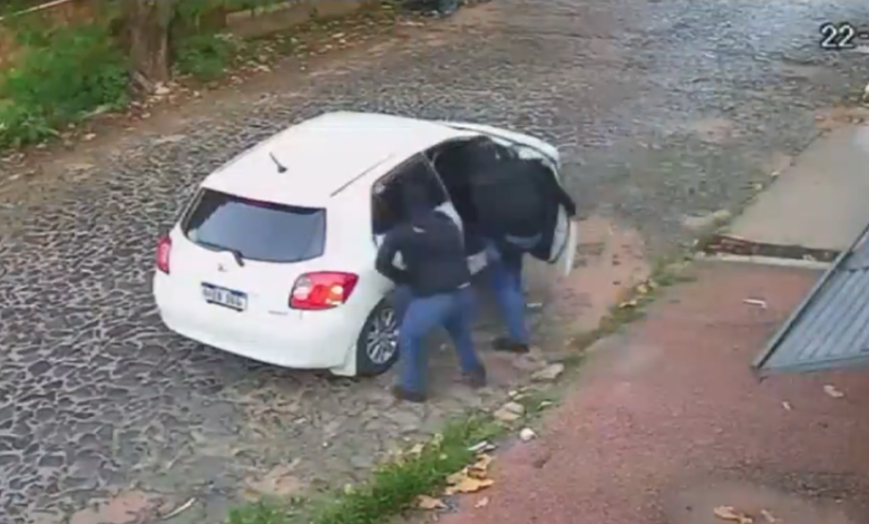 Justo antes de cerrarse el portón eléctrico, un automóvil blanco, de la marca Toyota, modelo Auris, los interceptó para evitar se cerrara por completo. En ese momento, tres delincuentes descendieron del vehículo con armas largas e ingresaron hasta el garaje.