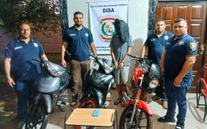 Las motocicletas fueron localizadas en la Colonia Yakare’i, donde el supuesto delincuente las había ocultado para su posterior venta. Entre las motocicletas recuperadas se encuentran: una motocicleta de la marca LEOPARD, modelo HB110- BUZZ de color GRIS (sin la chapa correspondiente) chasis N 9PEACDE42ML402596