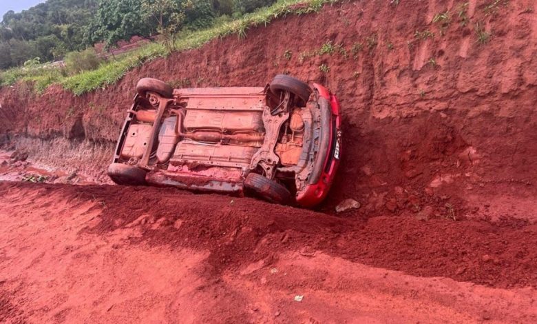 Como consecuencia, el vehículo terminó volcando y cayó a una cuneta al costado del camino.
