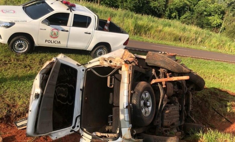 De acuerdo con el informe de la Comisaría 9ª de Yguazú, el conductor manifestó que perdió el control del rodado tras el reventón del neumático trasero derecho, lo que provocó que la camioneta saliera de su carril y terminara volcando en la cuneta de hormigón del paseo central que separa ambos carriles de la ruta.