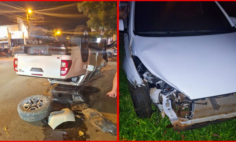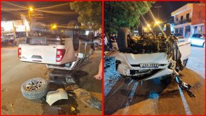 Un accidente de tránsito ocurrió en la madrugada de este sábado, que involucró el choque y posterior vuelco de una camioneta, ocurrido sobre la calle 15 de agosto de Caaguazú, dejando como saldo daños materiales significativos en ambos vehículos. El percance ocurrió cuando una camioneta, de la marca Toyota, modelo Hilux, color blanco y con chapa AAGC 987 Py., colisionó contra un automóvil de la marca Hyundai, modelo HB 20, color blanco, chapa AAST 946 Py., cuyo ocupante intentaba ingresar a su vivienda.