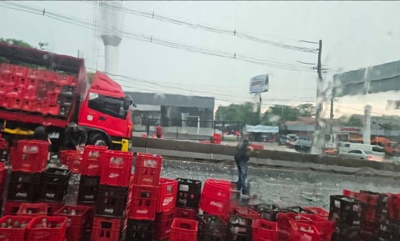 Acceso Sur: botellas de gaseosas caen al asfalto y genera caos en el tráfico