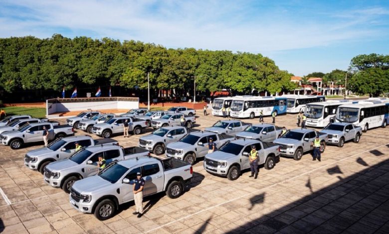Fueron entregadas camionetas, buses, equipamiento antidisturbios, cámaras corporales, equinos y un radar.
